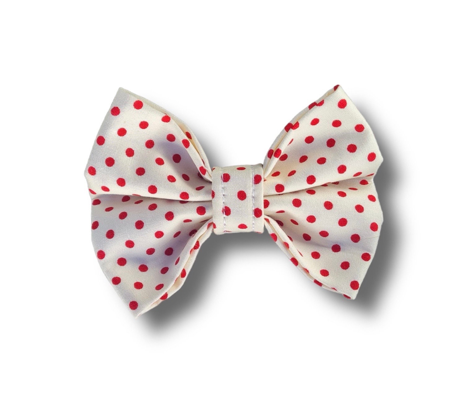 This dotty bow tie is super easy to put on your dog – with elastic attached to the back of the bow it can stretch to fit various sizes of collars.