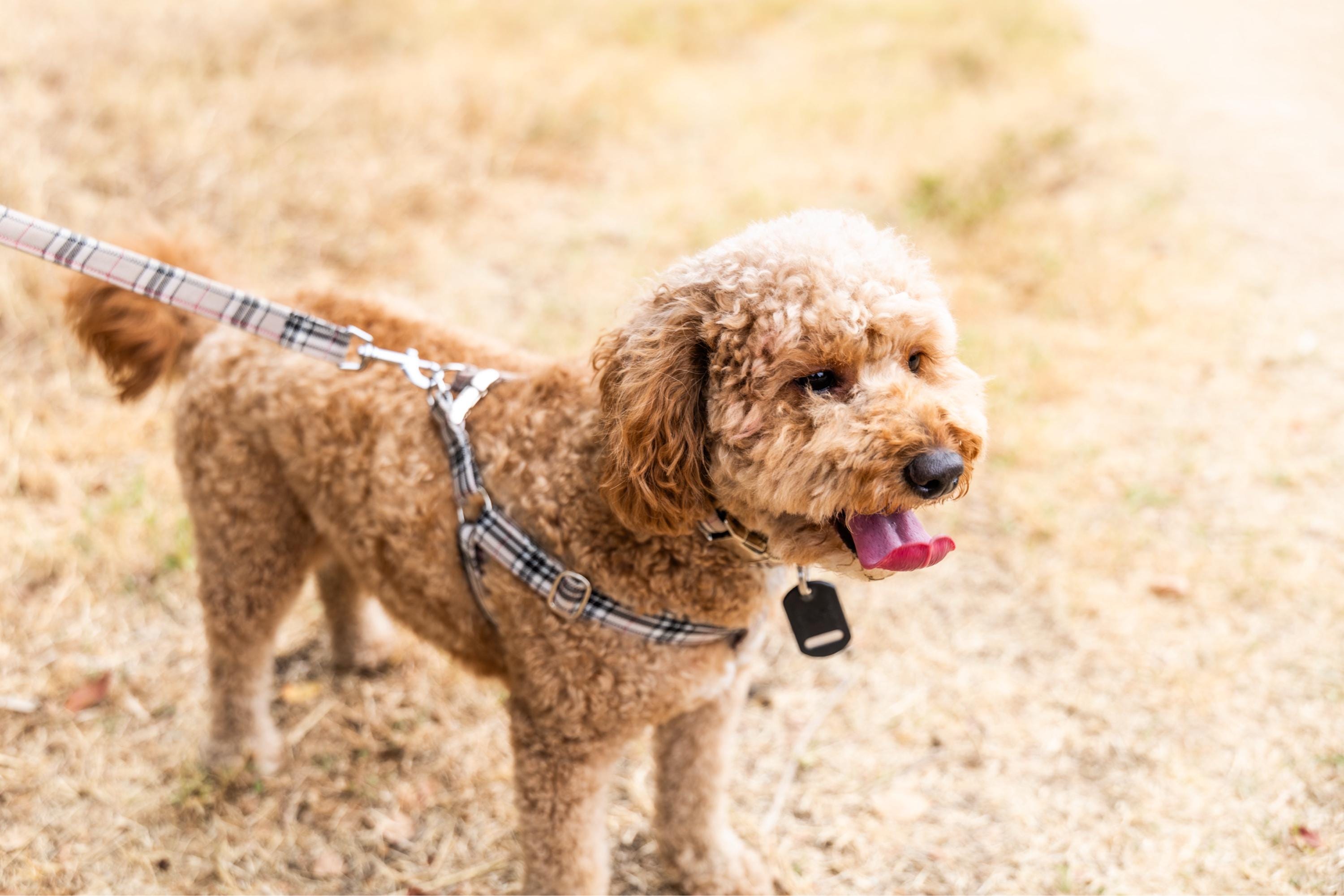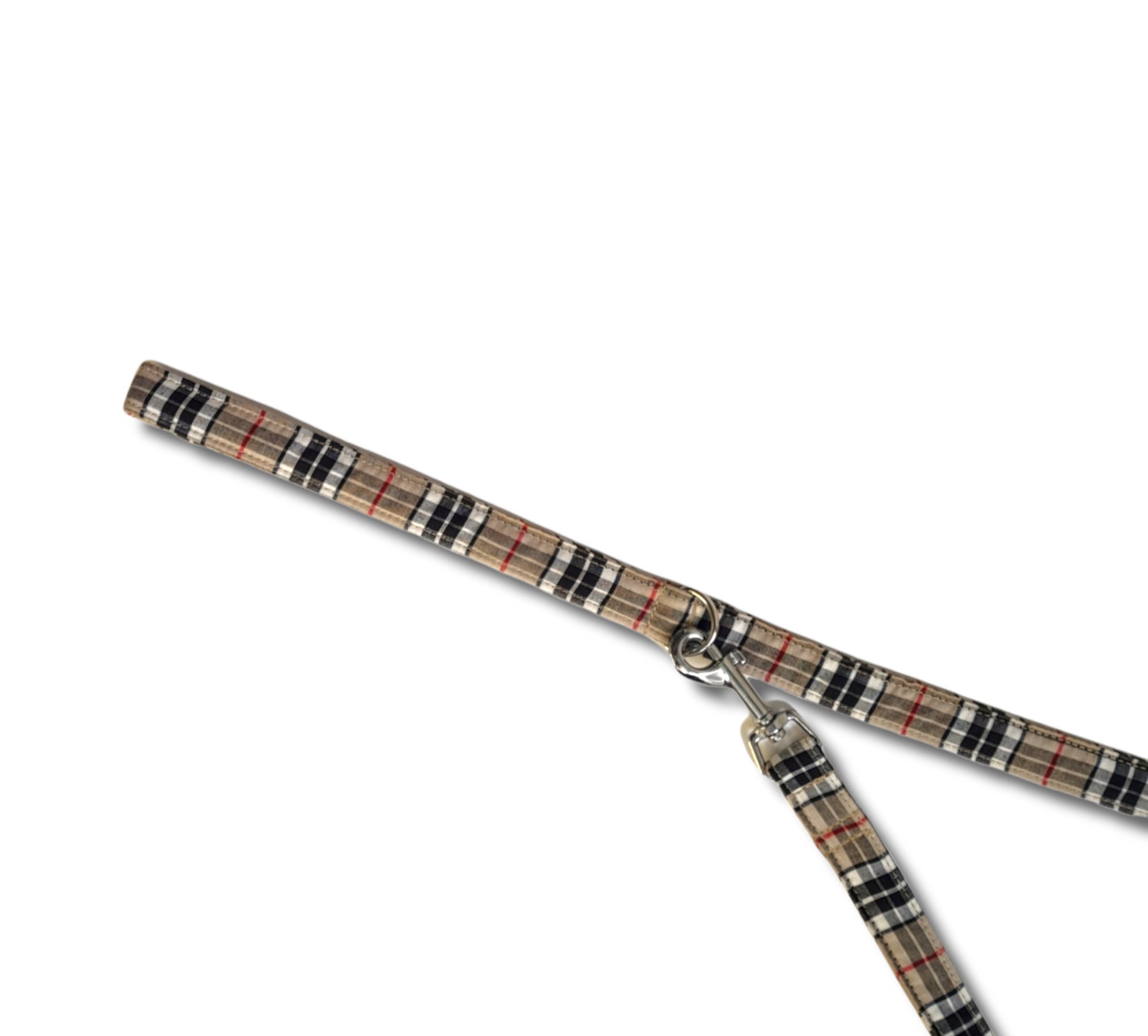 This classic beige and tan tartan lead is bound to turn heads when you and your dog are out on a walk.