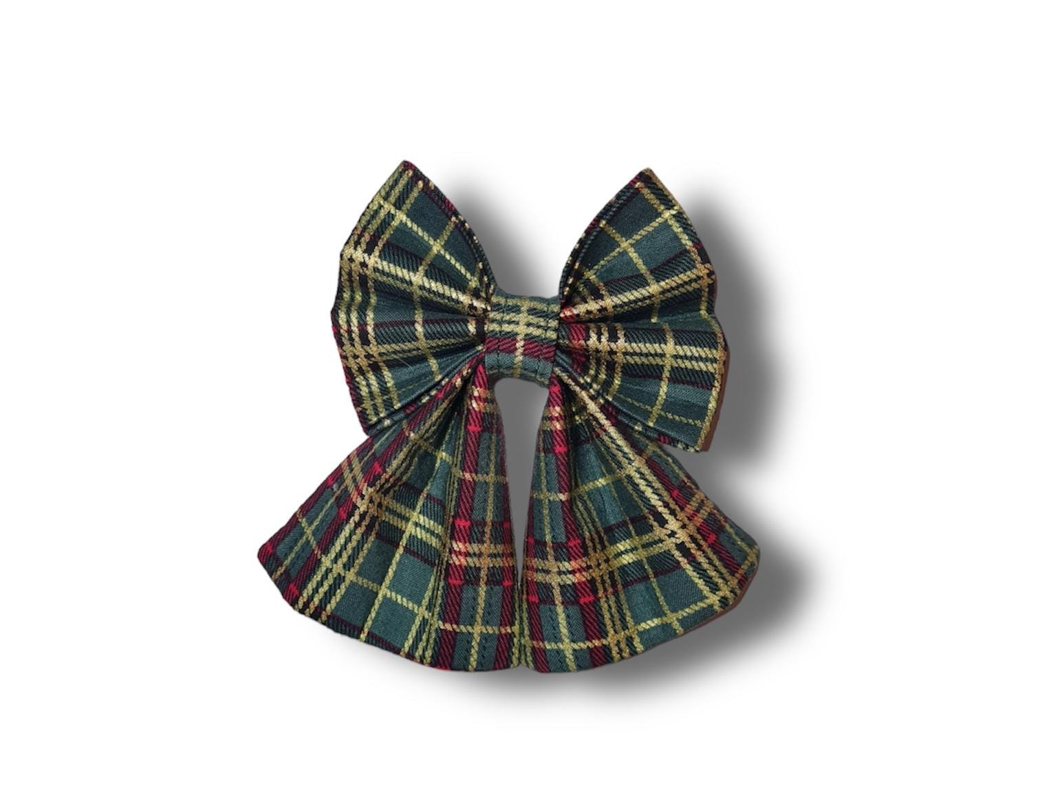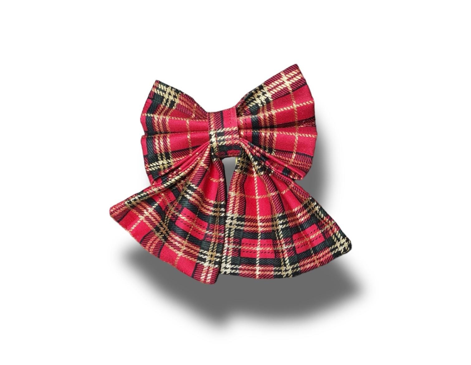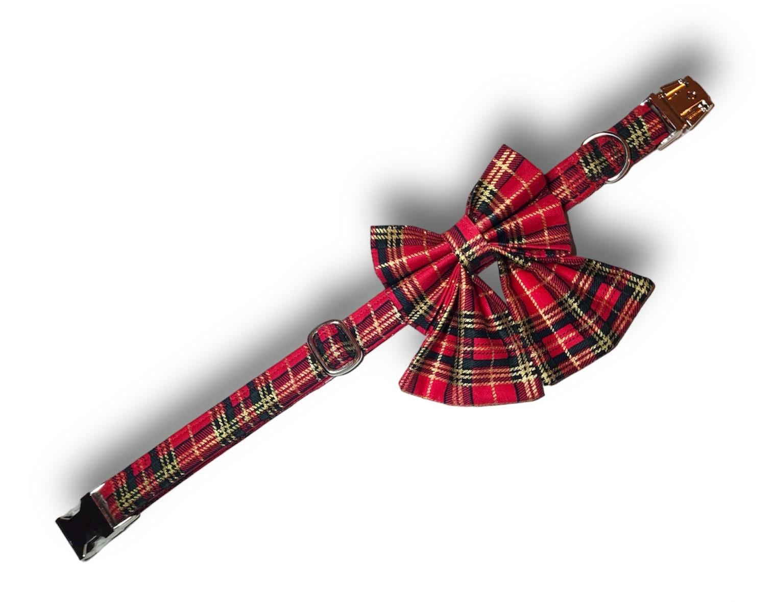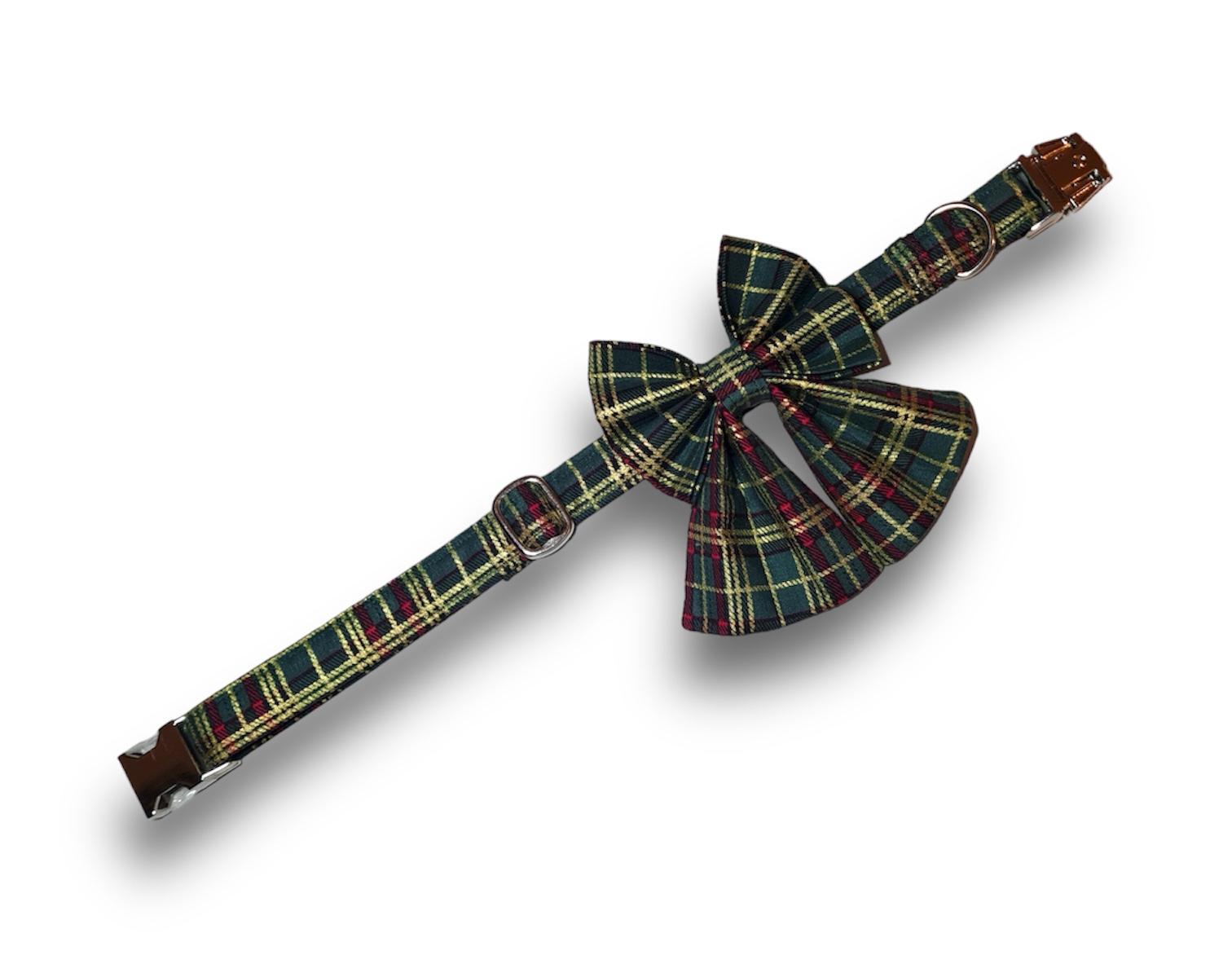 This Festive Christmas dog collar and sailor bow will have your pup looking extra fancy this holiday season. Crafted with a chic gold tartan design, you'll love the stylish and sophisticated look that adds elegance to any pup's outfit.