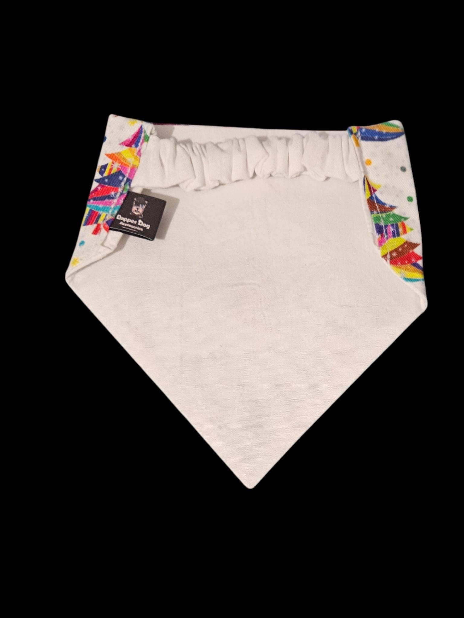 Choose from the over the collar style or scrunchy style that simply slips over your dogs head for easy wear and convenience. Enjoy the jolly holiday spirit with this cheerful bandana.