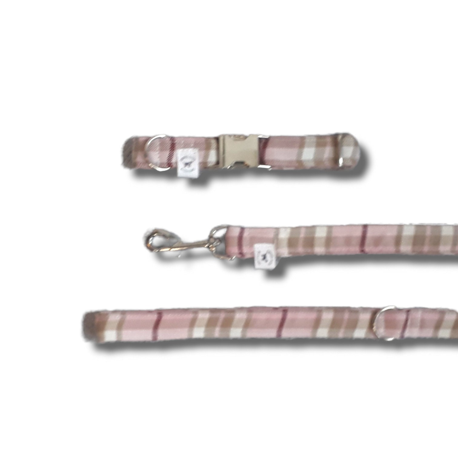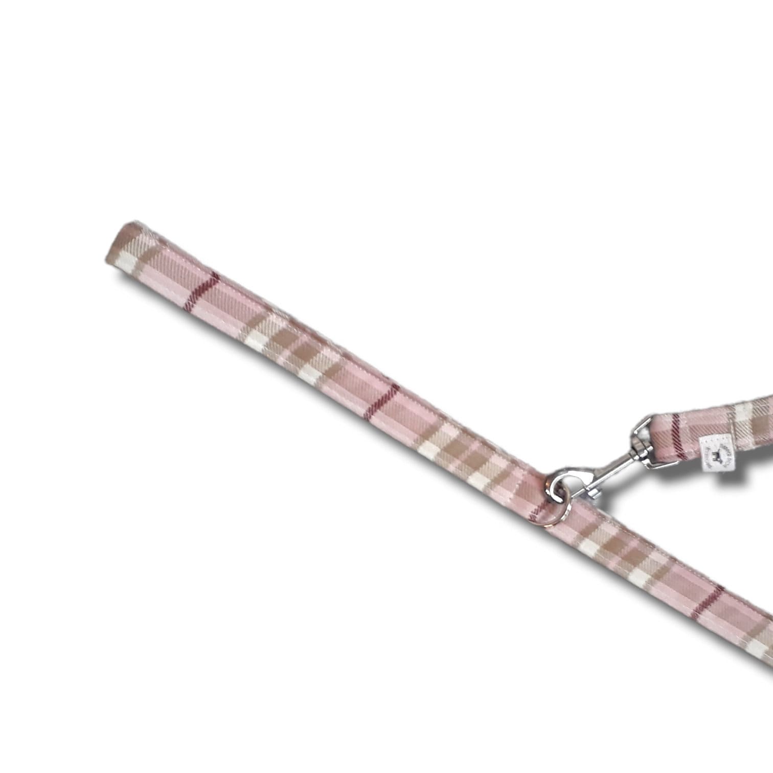 Pink tartan dog lead/collar.