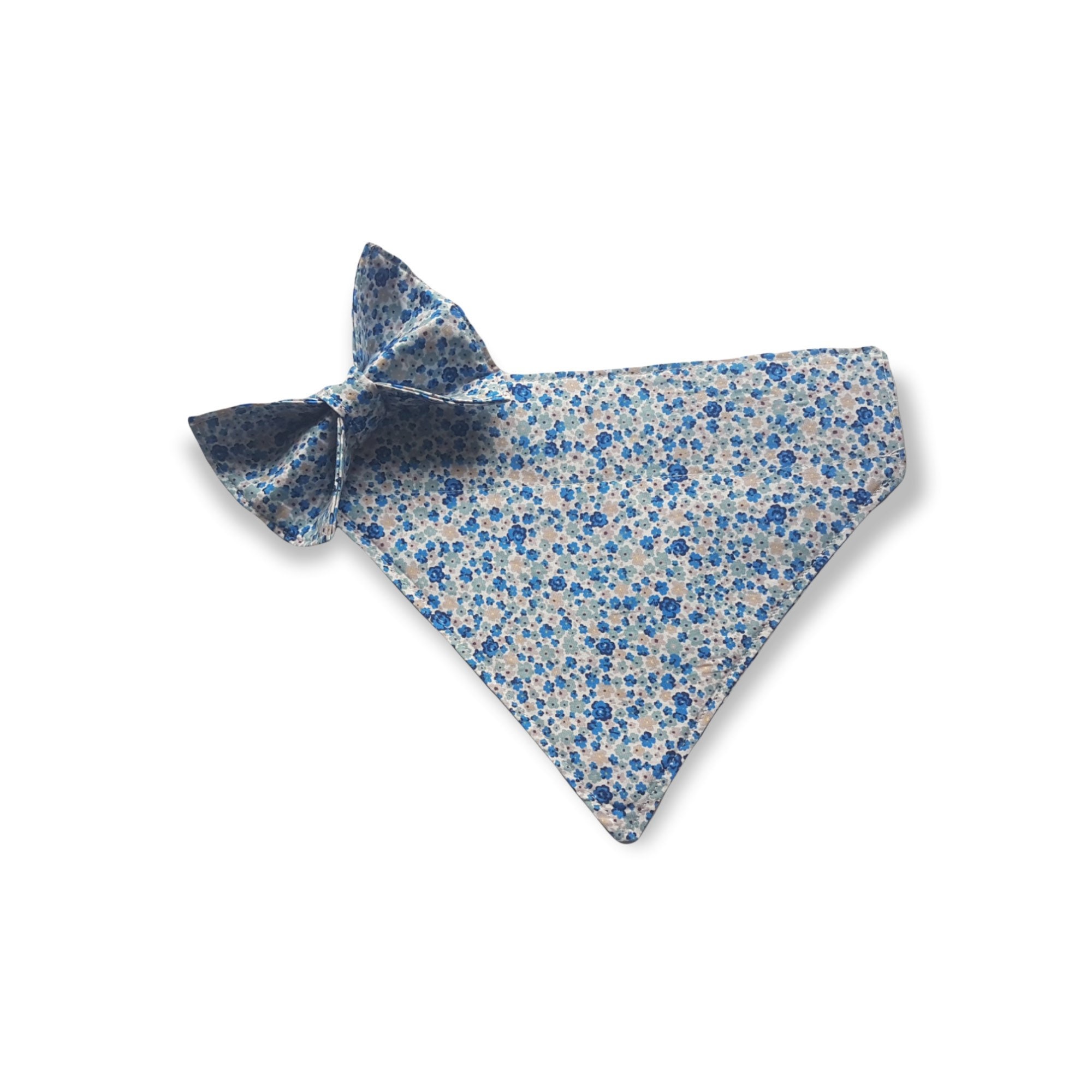 Blue ditsy print dog bandana, slip on collar style.