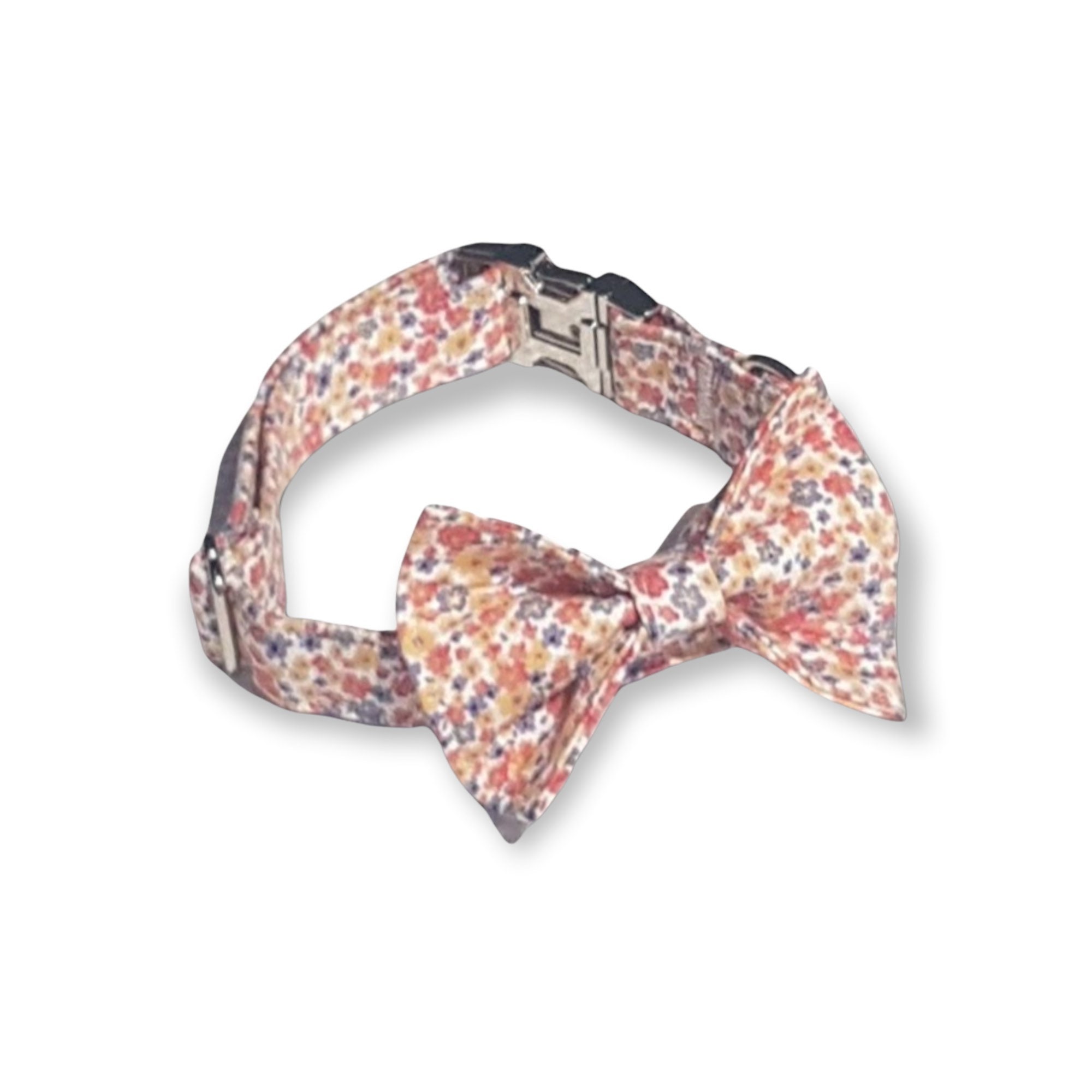 This floral look bow tie is super easy to put on your dog – with elastic attached to the back of the bow it can stretch to fit various sizes of collars.