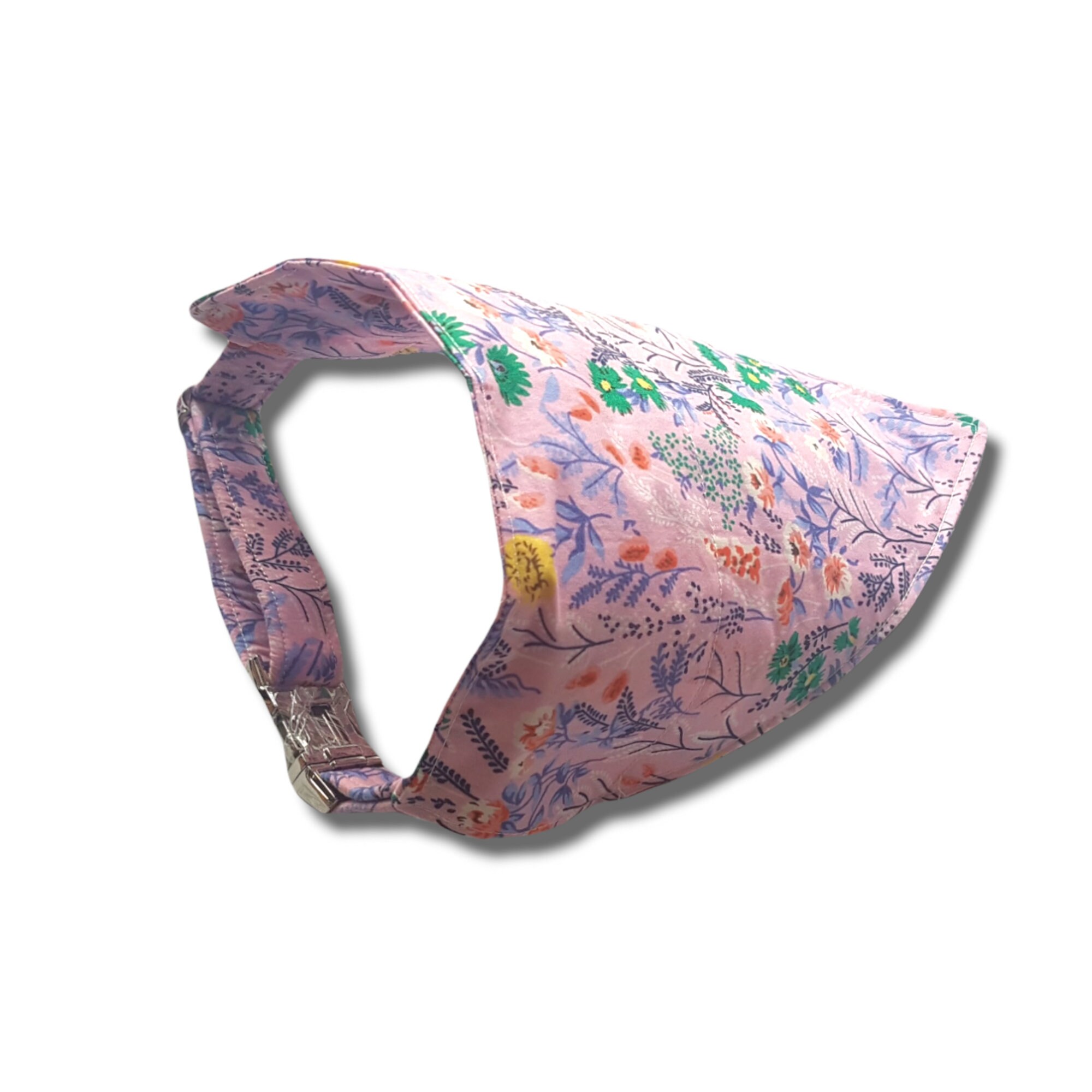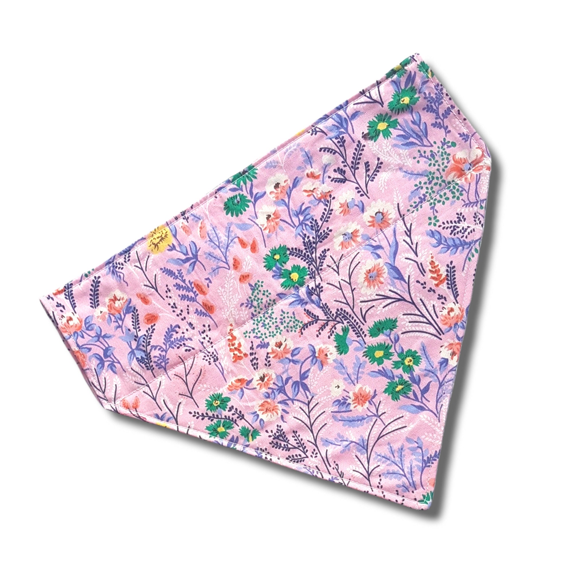 This pink floral bandana is a all round favourite with its summery look. It is super easy to put on your dog – all you need to do is just slips your collar through the bandana.