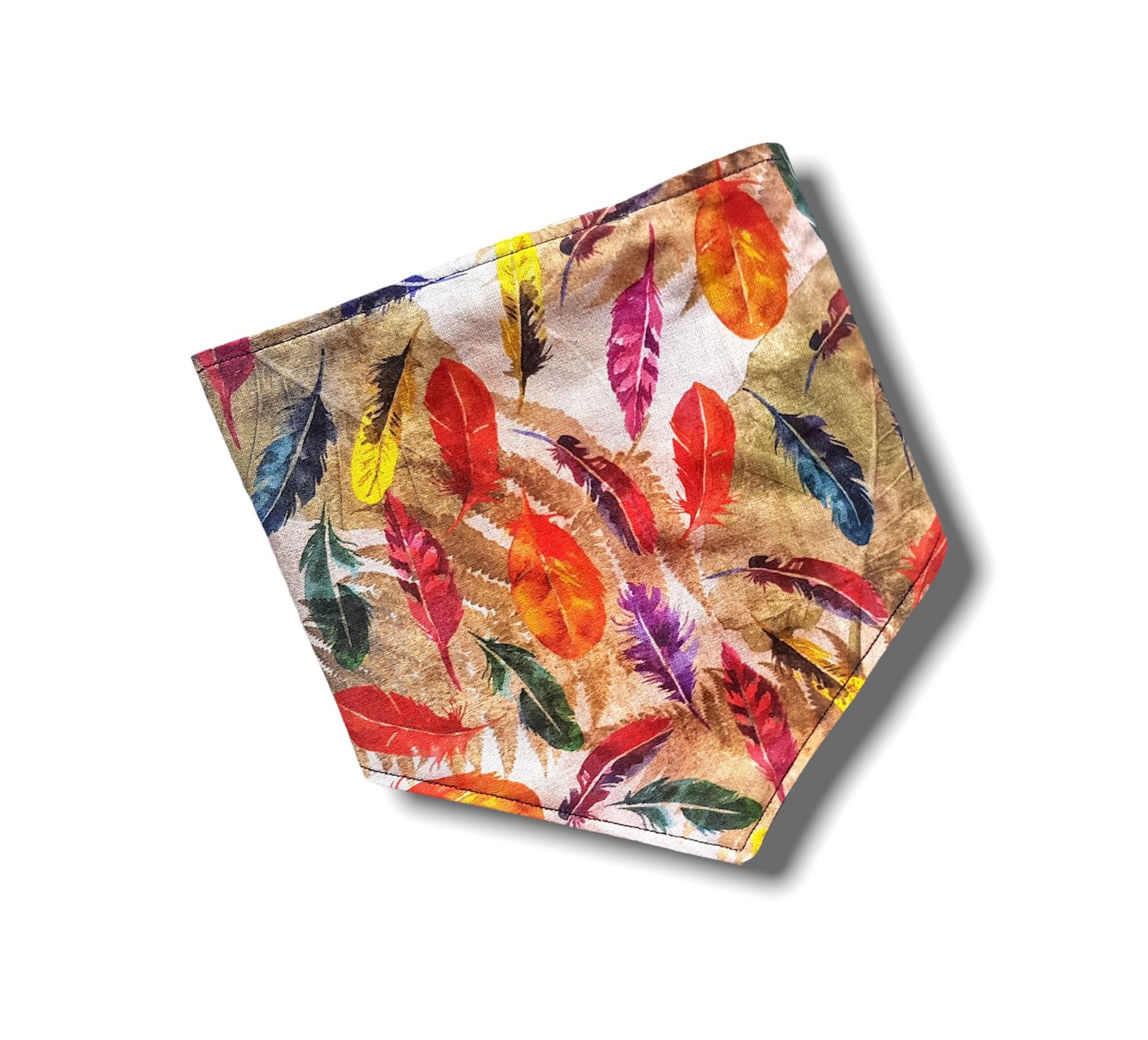 Feather print clip on style dog bandana.